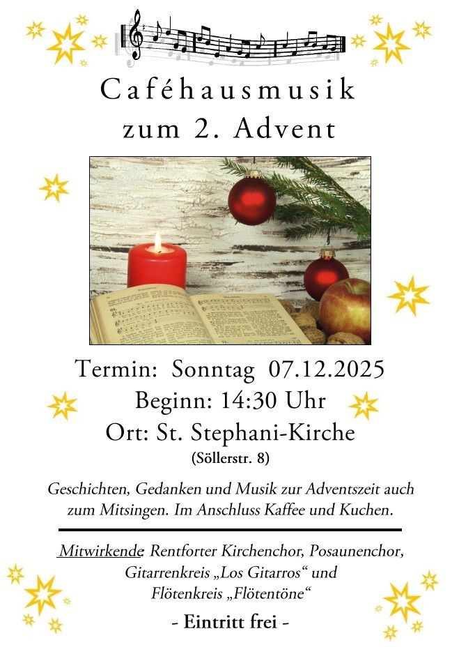 Rentforter Kirchenchor, Posaunenchor, Gitarrenkreis „Los Gitarros“. Flötenkreis „Flötentöne“