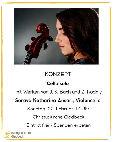 Die Cellistin Soraya Katharina Ansari stammt aus Freiburg. Sie ist Preisträgerin zahlreicher Wettbewerbe – u.a. des Lions-Musikwettbewerbs, des Violoncello-Wettbewerbs der HfMT Köln sowie der Konzertreihe „Accordate“. Als Stipendiatin wurde sie zweifach von der Werner Richard – Dr. Carl Dörken Stiftung gefördert. Seit ihrem Studium an der HfMT Köln widmet sie sich zusammen mit dem Pianisten Luis Castellanos (duoaken2.com) dem Repertoire für Violoncello und Klavier - Konzerte führten sie bereits in mehrere Länder Europas und nach Südamerika. In reinen Cello-Solo-Programmen sowie in genreübergreifenden Kunstprojekten wie mit dem Puppenspieler Stephan Wunsch (rosenfisch.de) oder mit der Schauspielerin Bianka Elberfeld lässt Soraya Katharina Ansari mit Leidenschaft den Facettenreichtum ihres Instrumentes erklingen.