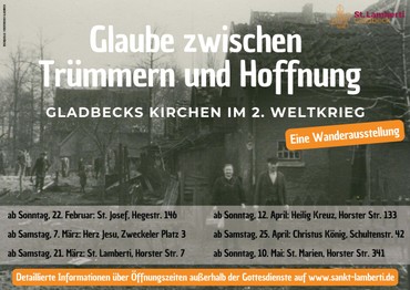 Die Pfarrei St. Lamberti Gladbeck lädt herzlich zum Besuch der Ausstellung "Glaube zwischen Trümmern und Hoffnung" ein.